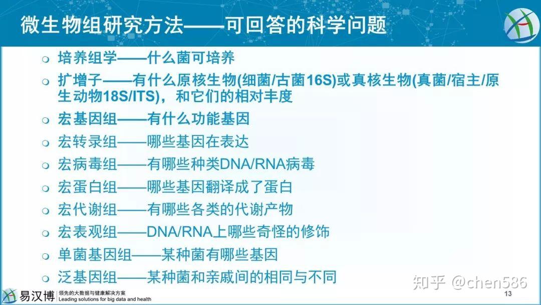 总体上来说,这几种方法都支持细菌鉴定和微生物多样性研究;宏基组测序和全基因组测序都包含16s rRNA测序的结果,而提供更丰富的信息,因此测序公司会推荐。
