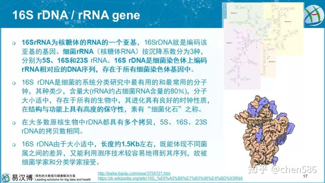 - 16s rRNA是核糖体RNA的一部分,参与蛋白质合成,具有高度保守性和变异性;将测序结果与数据库比对,可精确地识别细菌的存在(微生物的种类)。