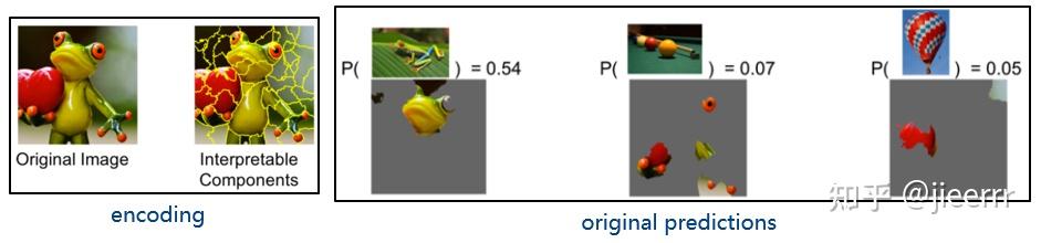 第二个例子是图像分类,我们可以看到原始图片有54%的概率被识别为树蛙,那模型为什么做出这样的决策呢?因为这张图片里的嘴巴这个特征和树蛙非常相似。这张图片还有7%的概率被识别为台球,尽管这看起来很荒谬,但我们通过LIME的解释,发现是因为树蛙的脚和眼睛跟台球很像,所以会有一定的概率被识别为台球。同样地,它还可能被识别为热气球,是因为这颗心脏有点像热气球的外表皮。当模型给出我这样的解释的时候,我的内心还是感到很舒适的,因为它的每个决策与我的思维是相符的,所以我会选择信任这个模型。