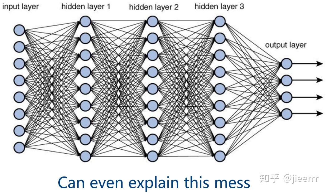 - 与模型无关的(Model-agnostic):一个好的解释器是希望能够解释任何模型的,即使是底下这个极其复杂的深度神经网络,也能够解释。